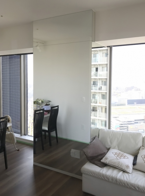 景色が素晴らしいタワーマンションの柱3面にミラーを設置しました。