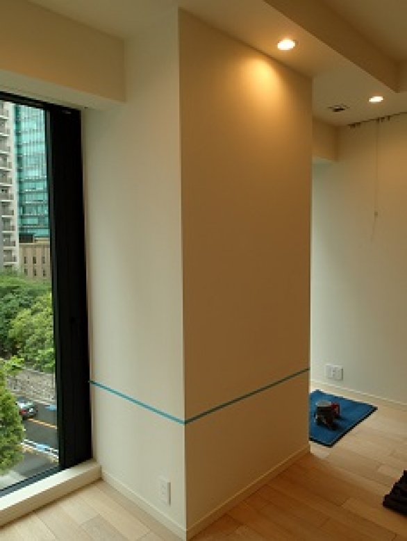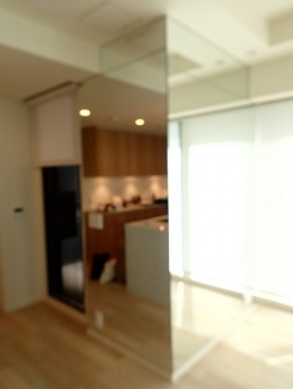 HOME > results 施工実績 柱 詳細 > 港区 H様 お部屋の2つの柱面全面に大型のオーダーミラーを貼りました。