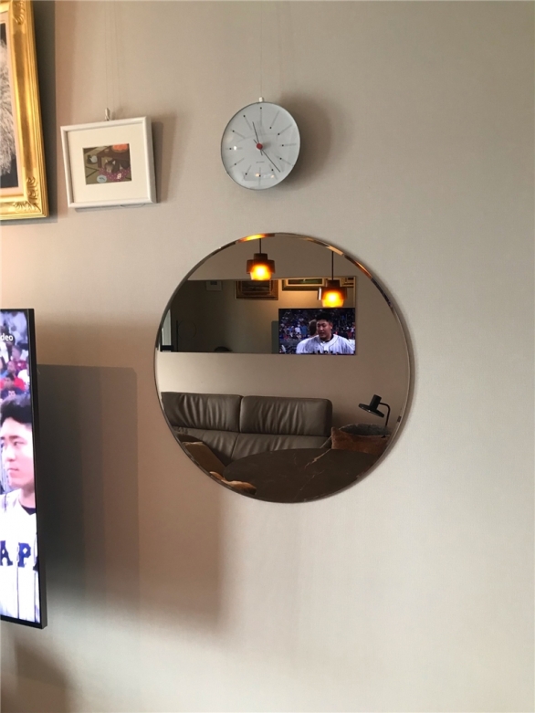 T様邸では、リビング壁面にもう1枚ミラーを設置しました。