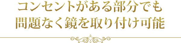 鏡を取り付ける部分にコンセントがある場合は、その部分だけ鏡に穴を開けて対応しております。