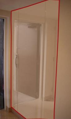 ミラーを3分割し、それぞれのミラーの周囲に15ミリ幅の面取り(カット)をさせていただきました。