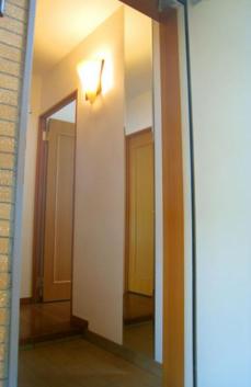 玄関壁面に幅30センチのミラーを設置させていただきました。