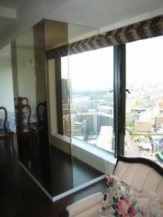 大きなガラス窓に面した壁面にミラーを設置させていただきました。