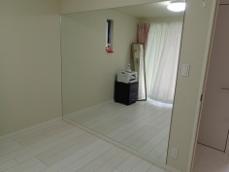 リビングの壁面の一面に大型の1枚サイズのミラーを貼りました。お子様のダンスの練習用としてご両親様からのご要望にお応えする形でご提案をさせていただきました。ミラーの端にはミラーエッジを付けてお子様がケガをされないように保護させていただきました。