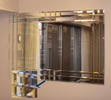 キッチンの壁と居室に面取加工を施したモザイクミラーを設置させて頂きました。