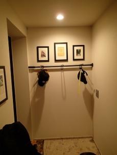 玄関から室内への導線がクランクしていてやや圧迫感がありました。 玄関壁面いっぱいのミラーを貼ることで廊下の奥行き感が出ました。またダウンライトでの明るさもミラーの反射効果でより空間は明るくなりました。 お客様には大変喜んでいただきました。ありがとうございました。